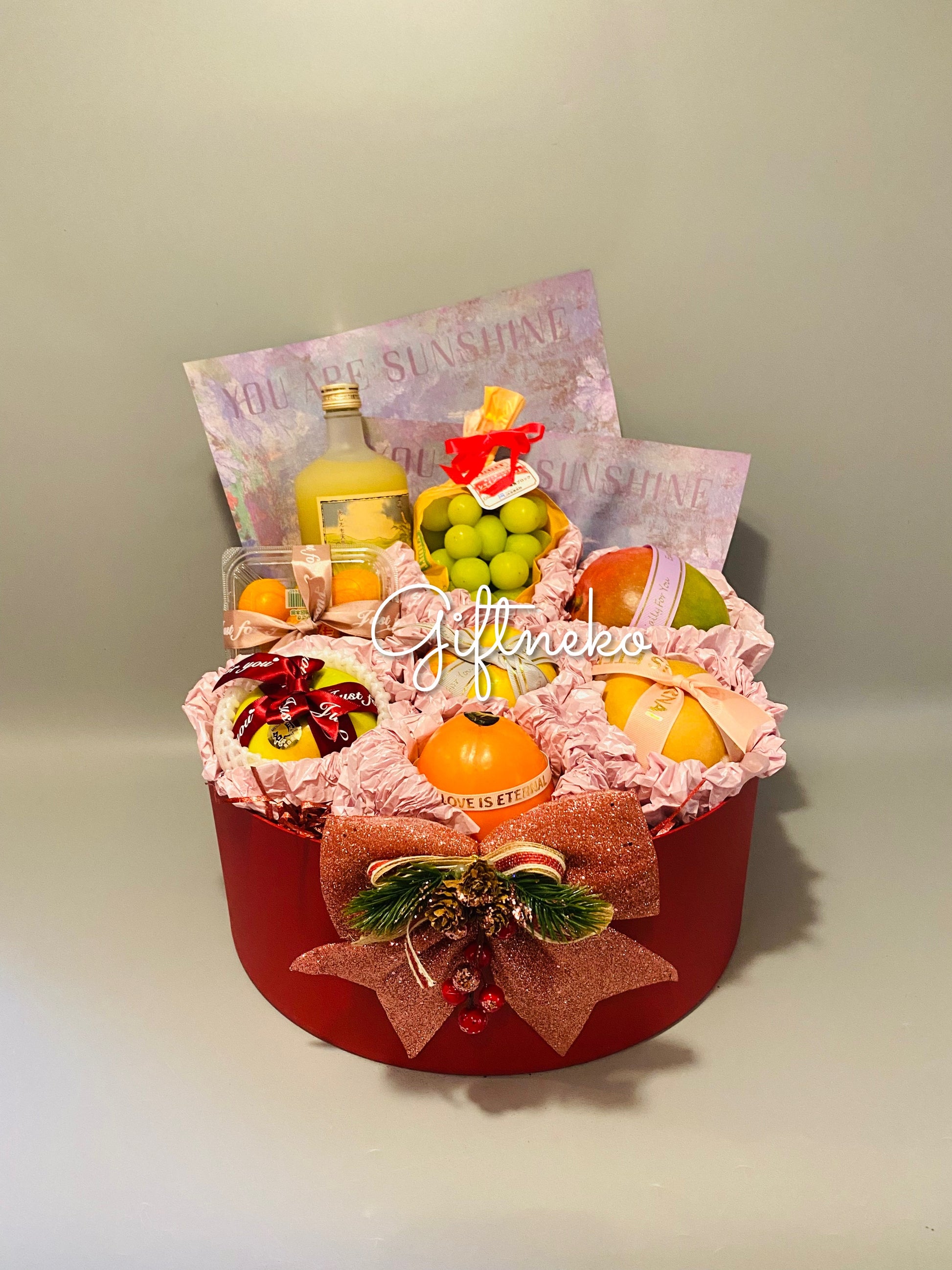在這個普天同慶的聖誕佳節,與摯友分享一份象徵健康與豐盛的喜悅,這款精緻的聖誕果籃無疑是心意與品味兼具的完美選擇。籃中薈萃全球節令鮮甜:日本香印提子薄脆多汁,散發優雅花香;宮崎柑桔酸甜清爽,蘊含豐沛維生素;澳洲芒果飽滿多汁,西班牙柿爽脆鮮甜,再匯聚來自韓國、美國及日本青森的精選鮮果,宛如一幅可品嘗的甜蜜世界地圖。每一口皆是自然豐饒的饋贈,佐以磨砂瓶裝的青森純蘋果汁,更添節日贈禮的質感與格調。這份禮物不僅華美悅目,更滿載著對摯友聖誕快樂、健康幸福的溫馨祝福,定能為佳節增添難忘驚喜與融融暖意。